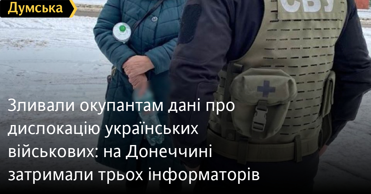 Трьох мешканців Донецької області, які передавали російським окупантам інформацію про місцезнаходження і переміщення українських військових, затримали правоохоронці.