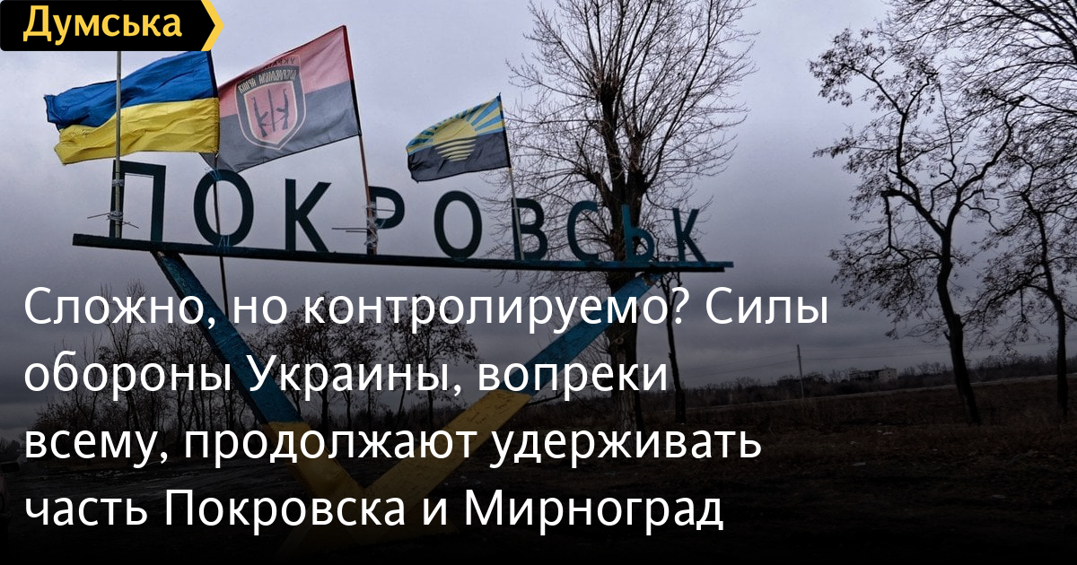 Сложно, но контролируемо? Силы обороны Украины, вопреки всему, продолжают удерживать часть Покровска и МирноградСитуация на покровском направлении донецкого участка фронта, ставшем ключевым для российской кампании лета-осени 2025 года, остается крайне напряженной. И хотя окружения украинских войск, о котором говорил диктатор путин, там нет, удерживать эти важные пункты Силам обороны становится все труднее и труднее, пишет военный обозреватель «Думской» Виктор Босняк. За минувшие сутки противнику не удалось продвинуться в Покровске, но ранее он сумел овладеть всей южной частью города и основательно «инфильтровать» свои силы в другие районы. Дерзкая десантная операция Главного управления разведки — группу спецназа высадили с вертолетов Black Hawk прямо в тылу просочившихся россиян, — судя по всему, позволила несколько стабилизировать обстановку. По имеющимся данным, украинские коммандос нарушили логистику врага, что позволило другим подразделениям Сил обороны произвести серию контратак и освободить несколько кварталов. Карта deepstatemap.live В субботу начальник управления штурмовых подразделений Вооруженных сил Украины полковник Валентин Манько заявил о «хороших новостях с фронта»: «По Покровску можем констатировать успешное продвижение наших штурмовиков — зачищаем дом за домом от оккупантов». И все же наверняка противнику удастся перегруппироваться и возобновить ползучее взятие города, уверен Босняк: «Покровск — ключевая точка на карте, без которой невозможно дальнейшее их продвижение в сторону Павлограда. Русские надеются, что захват Покровска позволит вырваться на оперативный простор и развить наступление с целью охватить с юга и запада Славянско-Краматорскую агломерацию — последнюю, которая осталась под контролем украинских сил. За Покровском местность постепенно понижается и почти нет водных преград, за которые могли бы зацепиться украинские защитники. Плюс это важный транспортный узел. Недавно военный блогер и инженер Сергей Бескрестнов, он же Флеш, сообщил, что руководство страны приняло тяжелое военно-политическое решение удерживать Покровско-Мирноградский узел. Это вызвало вал критики — мол, повторится история с Бахмутом, нельзя так. Я тут не советчик, понятное дело, но вообще-то такое решение необходимо. Это тот случай, когда просто так сдавать нельзя, нужно рисковать, как бы это ни звучало страшно. Силы обороны продолжают подчищать остатки российского прорыва на Доброполье, что заставляет вражеское командование выбирать между двумя направлениями; успешно контратакуют в самых болезненных для русских местах, и уж точно не соцсетям здесь влиять на позицию командования. Ужасно, когда общественное мнение заставляет военных лидеров пересматривать свои решения. С другой стороны, ужасно, когда военные лидеры упорствуют и доводят свои ошибки до катастрофы, как было с Крынками. Нормального рецепта у меня для вас нет». В Мирнограде, по данным из открытых источников, держат оборону две бригады Десантно-штурмовых войск, чей профессиональный праздник мы отмечали в субботу. Сражаются они отлично, но… Все, как обычно: логистика осложнена в силу огневого и дронового воздействия противника, остро не хватает людей и арты. Уходить вроде не собираются пока, но ситуация близка к критической. «Это почти Верден или Сомма,