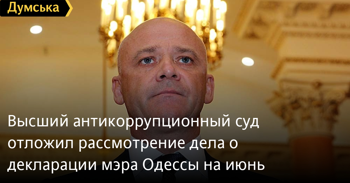 Высший антикоррупционный суд Украины отложил рассмотрение дела о внесении мэром Одессы Геннадием Трухановым заведомо ложных сведений в декларации за 2015 и 2016 годы до 5 июня в связи с неявкой адвокатов, передает корреспондент «Думской».