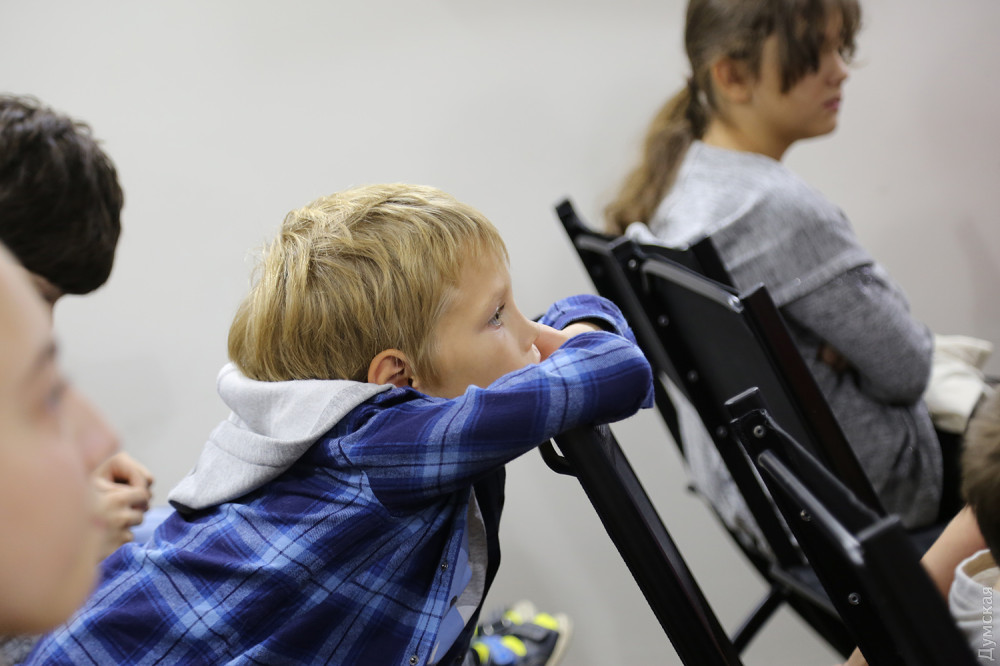 Лекції розпочалися ще в середині тижня — до першої групи потрапили діти старше 10 років. А ось на вихідних була змішана група — зовсім малеча займалася з підлітками, — і всі ставили багато запитань науковцям — особливо про дельфінів, катранів і морських скатів.