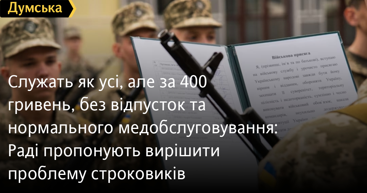Проблему військових-строковиків, які вже відслужили належне, але залишаються у лавах Збройних сил через повномасштабне вторгнення, пропонують вирішити Верховній Раді.