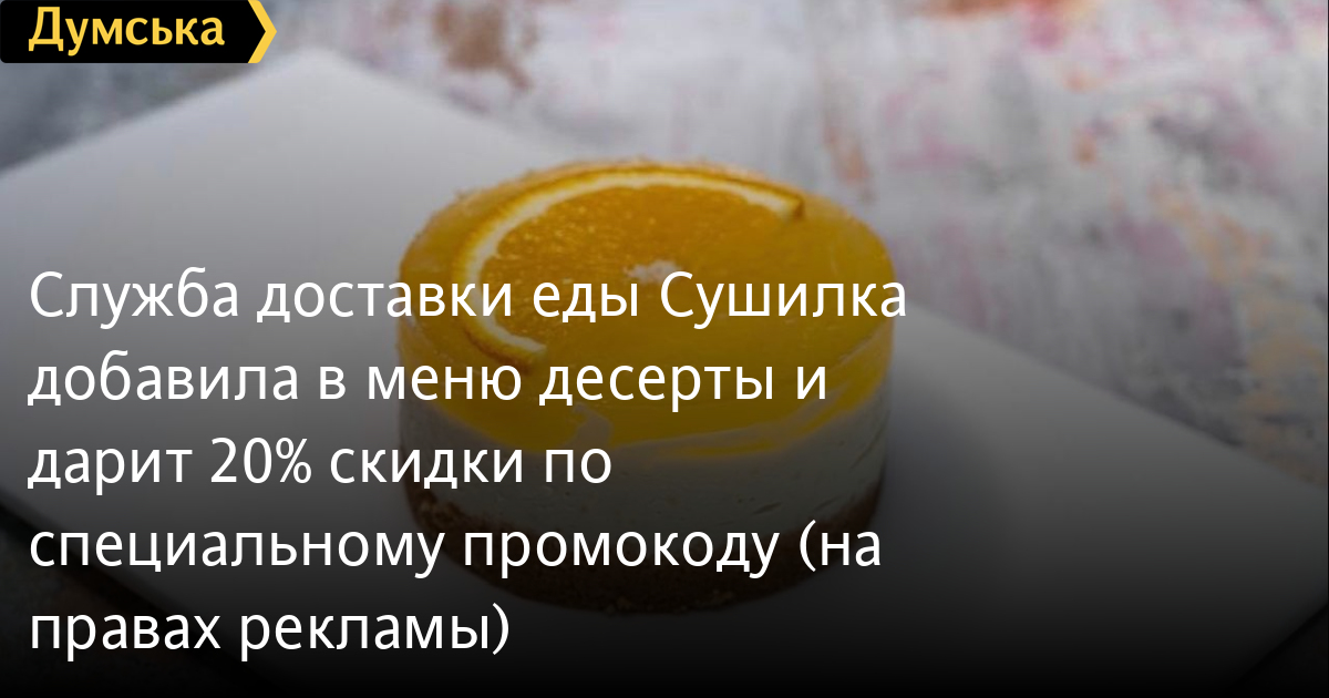 Служба доставки еды «Сушилка» добавила в меню десерты и дарит 20% скидки по специальному промокоду (на правах рекламы)Служба доставки суши «Сушилка» сообщает о новинках в меню. Отныне клиентам сервиса дополнительно доступны вкусные десерты, интересные салаты и летние напитки. Так, любители сладостей откроют для себя непревзойденный вкус банкейка «Наполеон», апельсинового чизкейка, чиа-пудинга с фруктами, а также маффинов с джемом и шоколадом. Также в меню добавлены новые салаты, такие как битые огурцы, тайский салат с баклажанами, боул с креветками, креветки в пряном соусе. Помимо освежающего лимонада, теперь клиентам доступны новые компоты с фруктами. Чтобы каждый смог попробовать все вкусные новинки, «Сушилка» дарит 20% скидки на все роллы и десерты по промокоду «думская21». Акция действует до 31 августа 2021 года. Оформить заказ или предзаказ можно на сайте sushilka.od.ua или по телефонам: 073-240-0-140; 095-240-0-140; 096-240-0-140; 048-735-29-99. Напомним, что у онлайн-ресторана также появились приложение для iOS и приложение для Android, где также можно сделать заказ. СМЕРТЬ РОССИЙСКИМ ОККУПАНТАМ! Заметили ошибку? Выделяйте слова с ошибкой и нажимайте control-enter |
