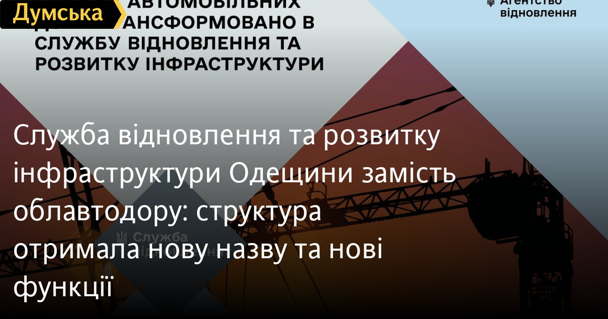 Служба відновлення та розвитку інфраструктури Одещини замість облавтодору: структура отримала нову назву та нові функціїОдеський облавтодор трансформувався у Службу відновлення та розвитку інфраструктури регіону. Як заявили в самій Службі, у зону її відповідальності відтепер входить не лише транспортна інфраструктура, а й будівництво та реконструкція житла та об’єктів соціальної сфери й громадського призначення, ЖКГ, енергетичної інфраструктури та захисних споруд тощо. Служба збирає та аналізує інформацію про спричинені російською агресією руйнування та потреби у відновленні в кожній окремо взятій області та є структурним підрозділом Державного агентства відновлення та розвитку інфраструктури України. Нова структура забезпечує експертизу, нагляд, прозорі та ефективні процедури закупівель в межах проєктів в Одеській області та є водночас головним помічником органів місцевого самоврядування у підготовці проєктів відновлення та післявоєнної відбудови. СМЕРТЬ РОСІЙСЬКИМ ОКУПАНТАМ! Помітили помилку? Виділяйте слова з помилкою та натискайте control-enter |