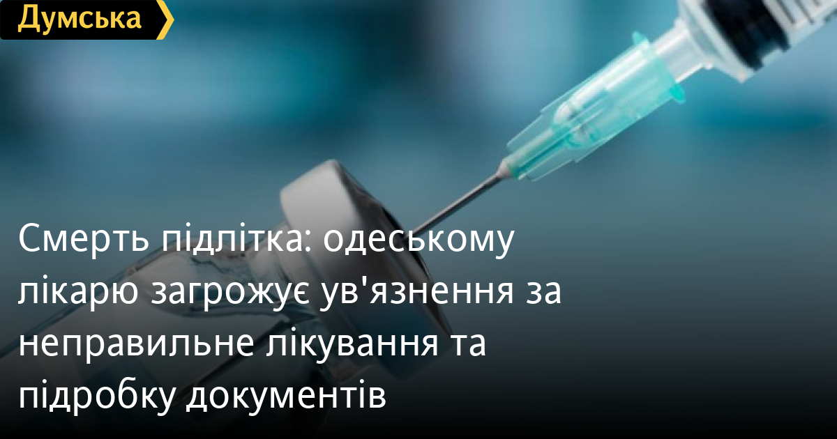 Смерть підлітка: одеському лікарю загрожує ув'язнення за неправильне лікування та підробку документівДо двох років позбавлення волі загрожує лікарю-інфекціоністу за смерть підлітка. Медика звинувачують у неналежному виконанні професійних обов'язків і в підробці документів, повідомляють у Прокуратурі Одеської області. У ході слідства стало відомо, що в 2024 році 18-річний курсант захворів на гострий бронхіт. В амбулаторії навчального закладу його направили до інфекційної лікарні. Під час огляду хлопець попередив лікаря, що у нього є алергія на деякі препарати. Однак інфекціоніст цю інформацію проігнорував і не вказав відомості в карті. Після огляду він призначив лікування і направив пацієнта на госпіталізацію в 11-ту лікарню. Там лікар також оглянув підлітка, але не зібрав повний анамнез. Він використовував рекомендації колеги, але зазначив, що необхідно зробити пробу на алергію. Коли медсестра почала вводити препарат, у молодого чоловіка зупинилося серце через анафілактичний шок. Медики намагалися його реанімувати, але ці дії виявилися марними через значне ушкодження мозку. Після смерті пацієнта лікар Інфекційки підробив документи, щоб приховати халатність. Зараз рішенням Приморського суду його відсторонили від виконання обов'язків. СМЕРТЬ РОСІЙСЬКИМ ОКУПАНТАМ! Помітили помилку? Виділяйте слова з помилкою та натискайте control-enter |
