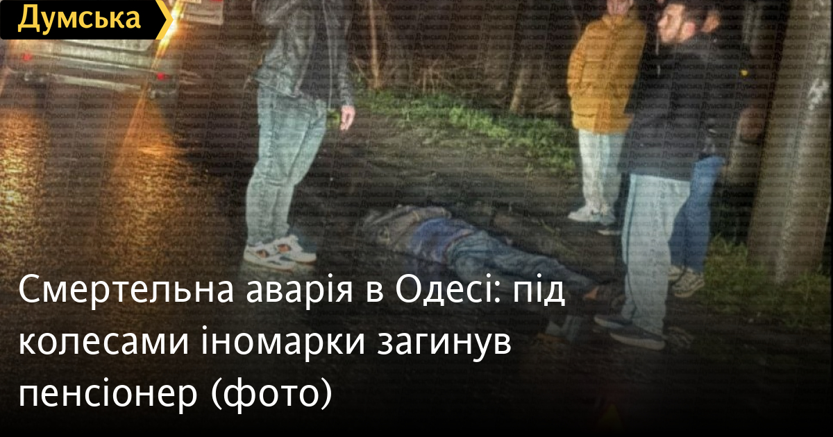 65-річний чоловік загинув внаслідок дорожньо-транспортної пригоди, що сталася вчора ввечері, 4 січня, у Київському районі Одеси. За попередніми даними Нацполіції, 23-річний водій автомобіля Ford Focus на вулиці Дмитріївській (раніше Дмитра Донського) наїхав на чоловіка, який переходив дорогу. Потерпілого доставили до лікарні, проте врятувати його не вдалося — від отриманих травм чоловік помер у медичному закладі. Водія перевірили на стан сп’яніння. За результатами тесту, молодий чоловік був тверезий. Відомості про трагедію внесли до Єдиного реєстру досудових розслідувань за ч. 2 ст. 286 Кримінального кодексу України (порушення правил безпеки дорожнього руху, що спричинило смерть потерпілого). Наразі призначено низку судових експертиз, триває встановлення всіх обставин події. СМЕРТЬ РОСІЙСЬКИМ ОКУПАНТАМ! Помітили помилку? Виділяйте слова з помилкою та натискайте control-enter |