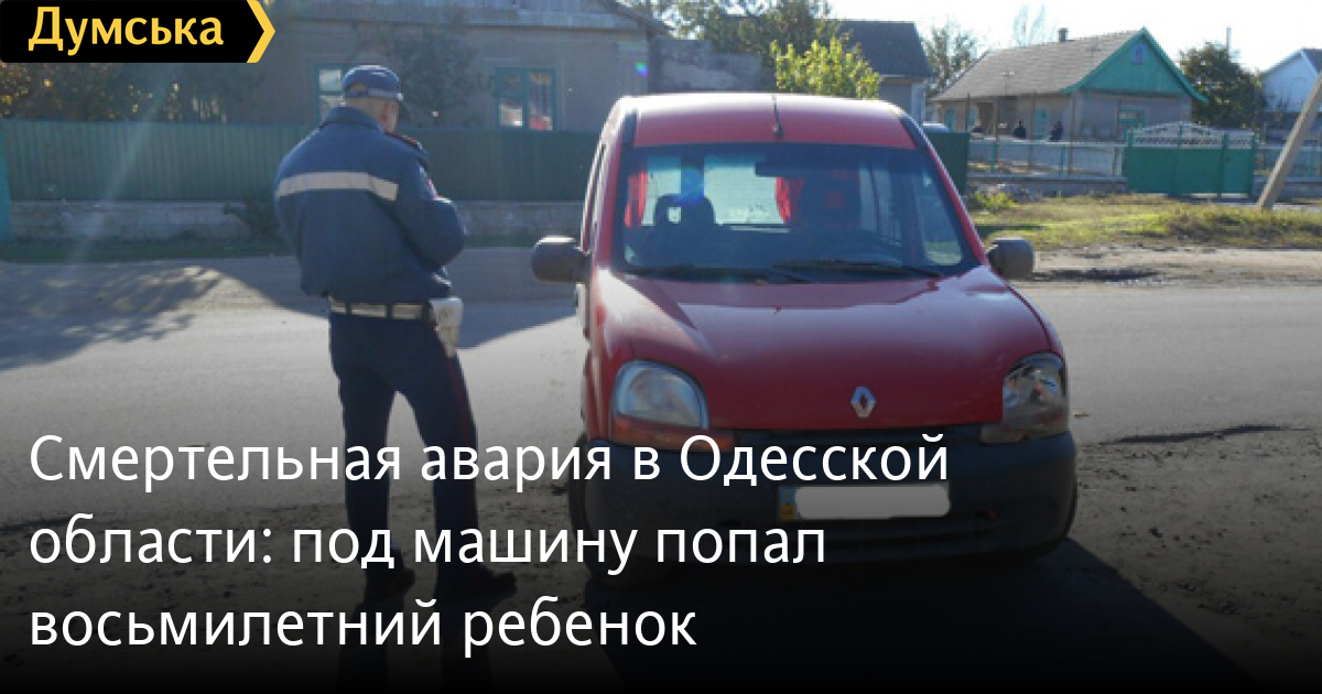 Милиция разбирается в причинах смертельного ДТП, в результате которого погиб восьмилетний ребенок. Авария произошла в селе Выпасное Белгород-Днестровского района, сообщает пресс-служба облУВД. «Ребенок внезапно выбежал на проезжую часть улицы, где попал под колеса автомобиля «Рено-Кенго». В результате полученных телесных повреждений мальчик умер по дороге в больницу», — отметили в пресс-службе облУВД. Водитель направлен на экспертизу. Открыто уголовное производство по признакам статьи 286 (нарушение правил безопасности дорожного движения или эксплуатации транспорта лицами, управляющими транспортными средствами) Уголовного кодекса Украины. <СМЕРТЬ РОССИЙСКИМ ОККУПАНТАМ! Заметили ошибку? Выделяйте слова с ошибкой и нажимайте control-enter |