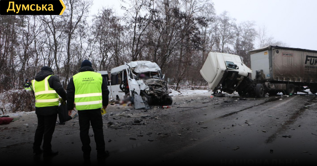 ДТП в Черниговской области, в котором сегодня утром погибли 13 человек, произошло из-за того, что водитель грузовика выехал на встречную полосу, где столкнулся с маршруткой.