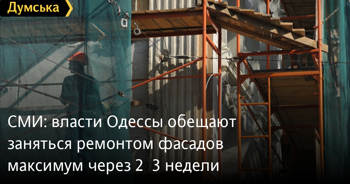 Власти Одессы обещают в течение месяца вновь заняться фасадами 22-х одесских домов, реставрация которых началась еще 2,5 года назад. Об этом сообщает газета «Сегодня» со ссылкой на начальника горуправления капстроительства Анатолий Рагулина. «Максимум через 2 – 3 недели мы приступим к работам. До конца года планируется привести в порядок все 22 объекта первой очереди», — сказал чиновник.