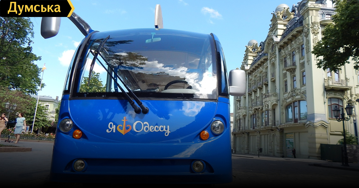 Летняя Дерибасовская. Зной. Тишина. Сосредоточенный пацан в панамке осторожно едет по брусчатке на велике. Солнце пробивается сквозь густую листву акаций. Улица будто умытая — чистая. Сонные пенсионеры сидят на скамеечках в тени. Тут же стоит синенький экскурсионный электромобиль. Водитель-усач широким жестом приглашает на экскурсию: дескать, эх, прокачу! И таких игрушечных с виду электробусика тут три: кроме синего, еще желтый и красный. Каждый ездит по своему маршруту.