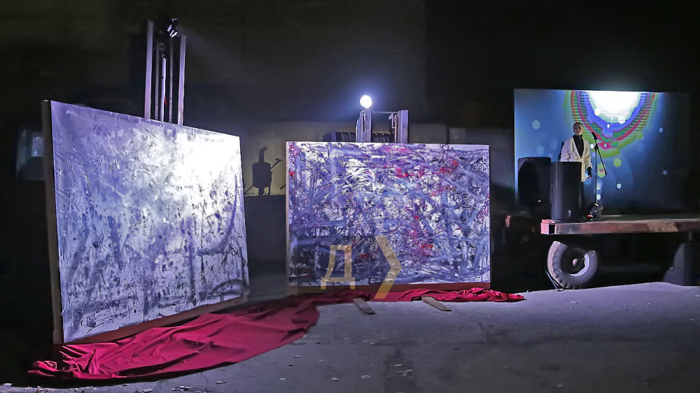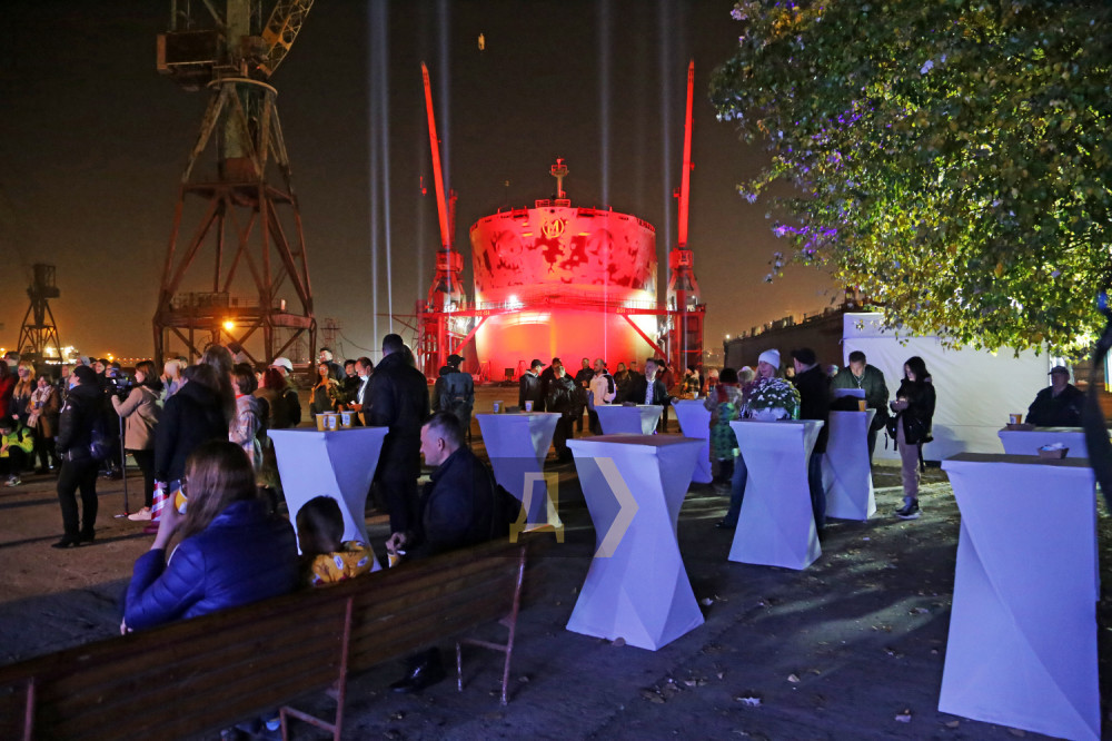 На предприятии ИСРЗ, — крупнейшем в регионе судоремонтном заводе, что рядом с Черноморском, вечером 28 октября было шумно. Трассы десятка прожекторов рассекали небо над доковой набережной, а резкие звуки тяжелого рока давили на извилины зрителей, пришедших на презентацию картин современного искусства.