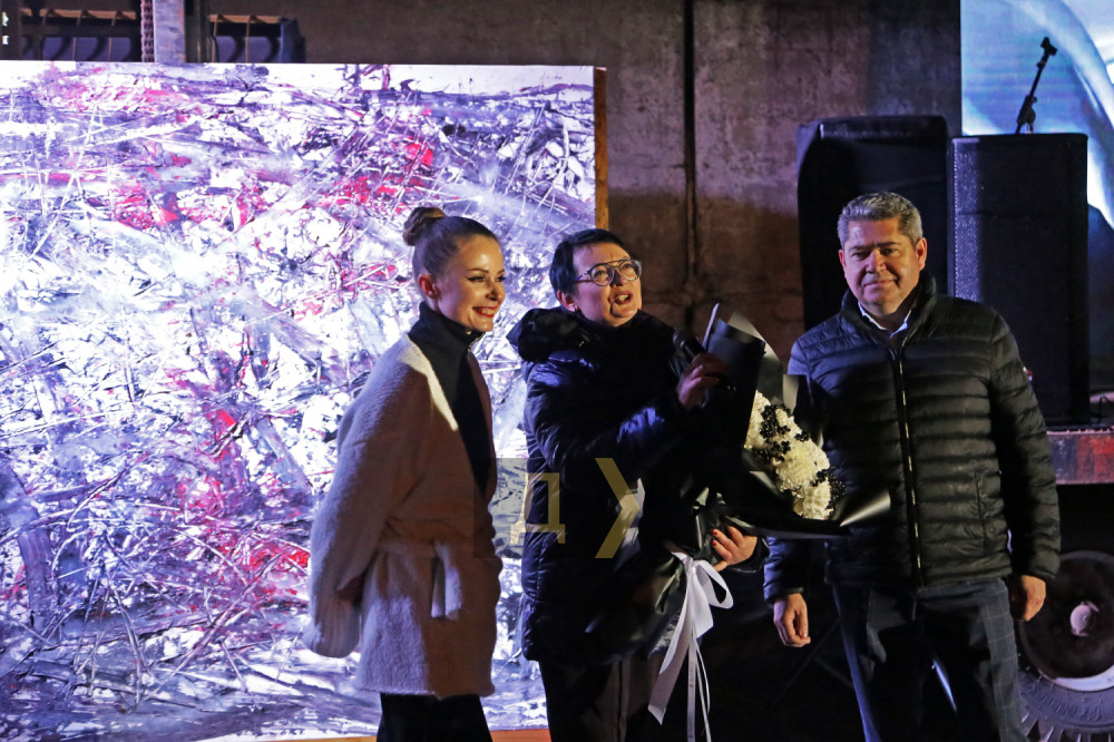 Главной героиней вечера стала молодая художница Дарья Наквакина, сумевшая связать в одно целое индустриальный ритм большого завода с тонкой чувственной организацией молодой женщины.