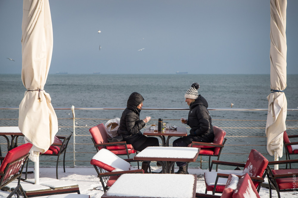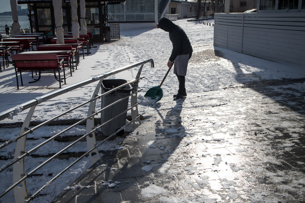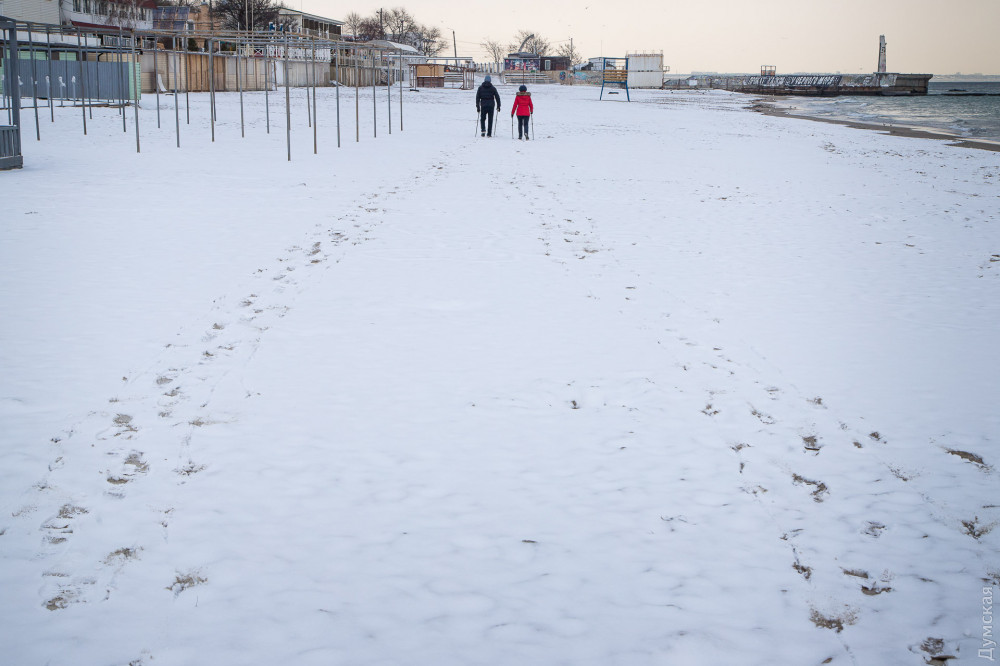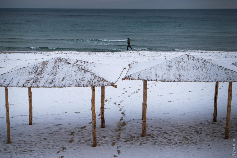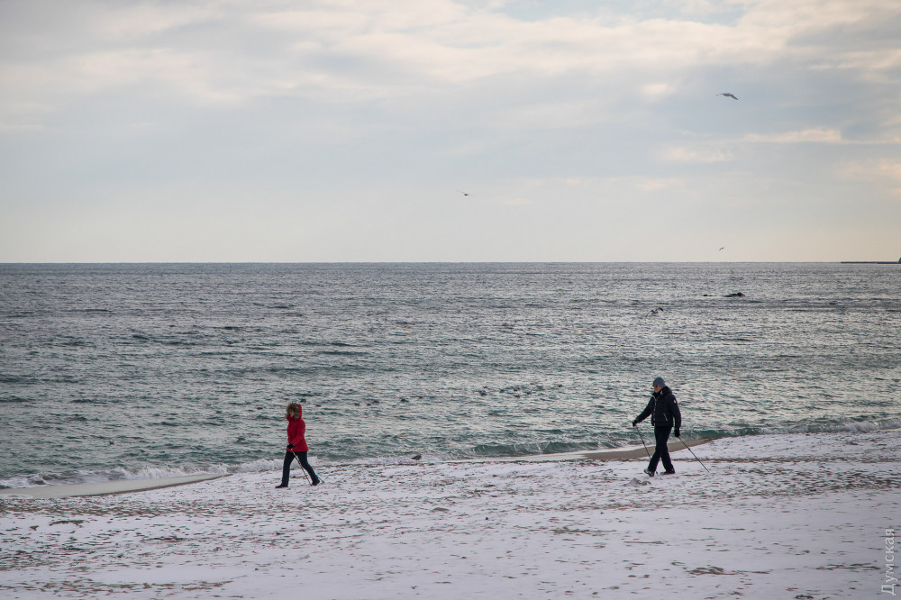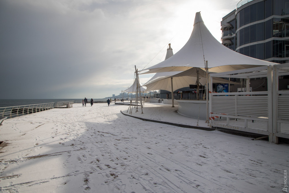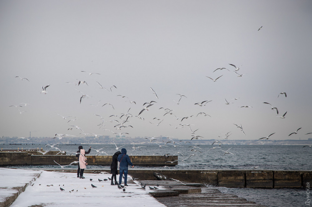 Ежедневно зима пытается укрыть Одессу в белые одежды. Однако приморский город сопротивляется. Пока плюсовые температуры сводят на нет все попытки снежной королевы.