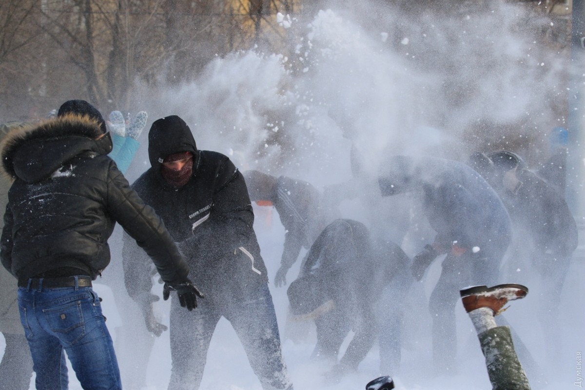 В каждой команде было примерно по 20 человек, передает корреспондент «Думской». Боеприпасы из-за мороза лепились плохо, но оно и к лучшему: серьезных синяков на лице ни у кого не осталось.