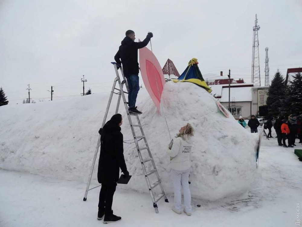 Как передает корреспондент «Думской», чиновница планировала зарегистрировать национальный рекорд Украины в номинации «снежная скульптура». Торжественное открытие фигуры и регистрацию рекорда свиноделы приурочили к столетнему юбилею Соборности.