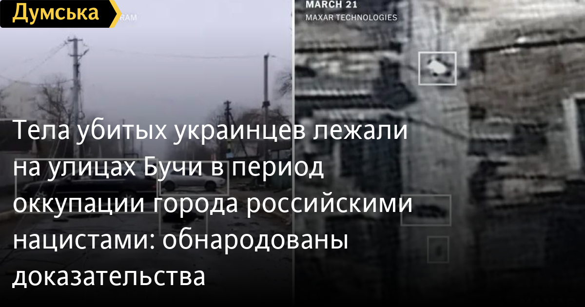 На одном из видео, которое снял член местного совета 2 апреля, видно множество тел, разбросанных по улице Яблонской в Буче. Данные спутника доказывают, что по крайней мере 11 из них находились на улице с 11 марта.