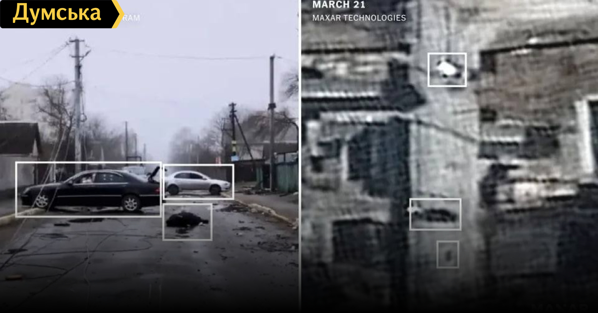 Соответствующие спутниковые снимки в качестве доказательства военных преступлений рф предоставила изданию New York Times компания Maxar Technologies.