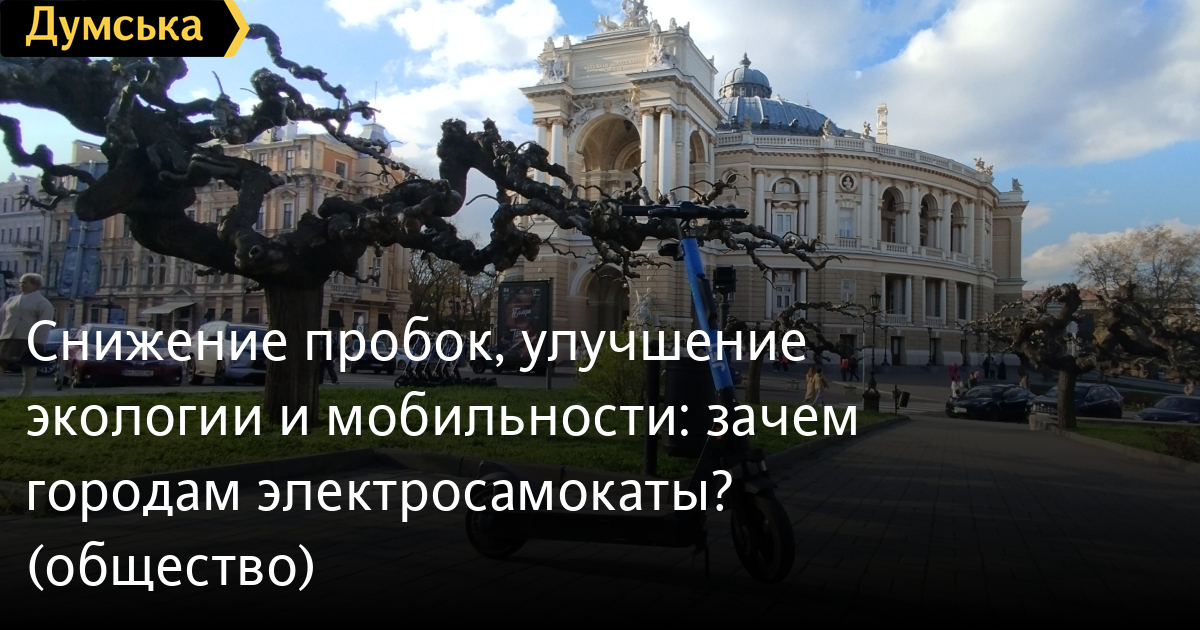 Снижение пробок, улучшение экологии и мобильности: зачем городам электросамокаты? (общество)В условиях роста цен на топливо электросамокаты становятся эффективной альтернативой для коротких ежедневных поездок. Наличие сервисов проката способствует снижению загруженности дорог и улучшению качества воздуха, что особенно актуально для крупных городов — Киева, Одессы, Харькова и других. Кроме того, снижение зависимости от ископаемого топлива и декарбонизация мегаполисов являются важным вкладом в выполнение Украиной экологических обязательств перед ЕС в рамках Green Deal 2030. Об этом отмечает Дмитрий Рославцев, доцент кафедры транспортных систем и логистики Харьковского национального университета городского хозяйства, в интервью изданию «Деньги.UA». Развитие инфраструктуры для электросамокатов и велосипедов позволяет городам разгружать общественный транспорт и снижать расходы на его содержание. В то же время это повышает транспортную доступность и безбарьерность, а также улучшает туристическую привлекательность, что особенно важно для Одессы в сезон. Кроме этого, микромобильность способствует развитию локального бизнеса и увеличению налоговых поступлений в местные бюджеты. Она также повышает устойчивость городской мобильности: во время пандемии или блэкаутов велосипед или электросамокат часто оставался одним из немногих доступных видов транспорта. Для повышения безопасности необходимо ограничивать скорость микромобильного транспорта до 20–25 км/ч — как это предусмотрено в странах ЕС. По словам эксперта, сервисы проката уже соблюдают эти ограничения, а органам местного самоуправления значительно проще взаимодействовать с бизнесом, чем контролировать частных пользователей. В то же время важным является регулирование движения электросамокатов и велосипедов в публичном пространстве. Города должны учитывать интересы всех участников движения — пешеходов, водителей и пользователей микромобильности. Это может включать создание отдельных или совместных дорожек, специальных полос, зон с ограниченной скоростью, а также определение территорий доступности сервисов. «В Одессе электросамокаты могут передвигаться по велосипедным дорожкам, обочине или краю проезжей части. При этом движение персонального электротранспорта запрещено на Трассе здоровья. В ряде зон, в частности в Аркадии, Городском саду, дендропарке Победы и парке Шевченко, действует ограничение скорости до 12 км/ч. Парковка электросамокатов разрешена только в специально отведённых местах. С сезона 2025 года городской департамент транспорта совместно с сервисами проката разрабатывает и совершенствует схему размещения парковочных зон для электротранспорта. Локации уже определены и согласованы с соответствующими службами, также прорабатывается вопрос увеличения их количества. Управлять электросамокатом рекомендуется с 14–16 лет. Категорически запрещено управлять любым транспортом в состоянии алкогольного опьянения. Соблюдение этих простых правил сделает поездки безопасными для всех участников дорожного движения», — отмечает Иван Попов, топ-менеджер сервиса проката электросамокатов JET.RIDE. По словам Дмитрия Рославцева, в Украине микромобильность пока часто воспринимается как форма досуга, тогда как в странах Европы — это полноценный инструме