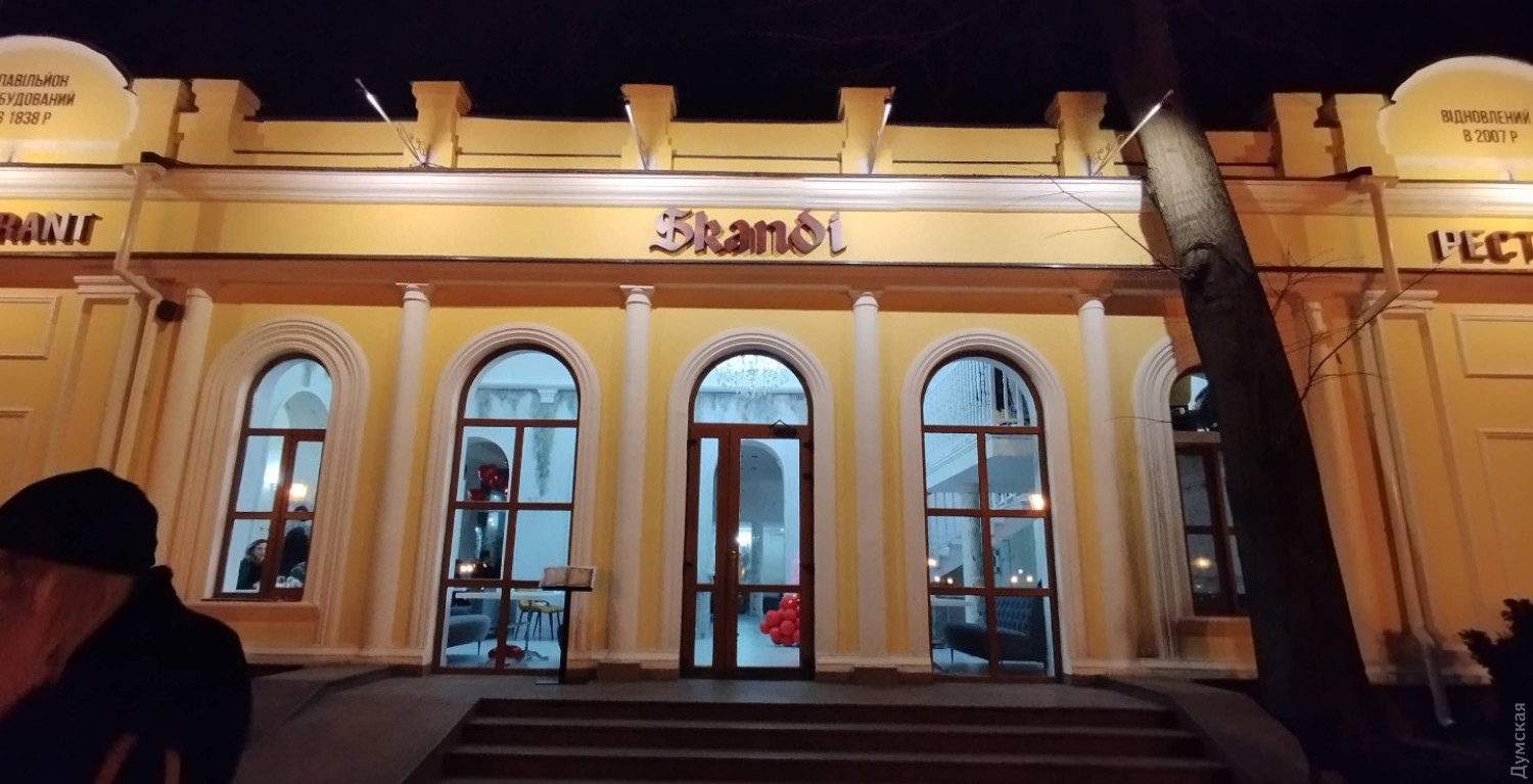 Речь идет о здании ресторана, которое появилось в 2007 году в результате реконструкции бывшего павильона минеральных вод. Последний построили в 1838 году, в советское время и вплоть до перестройки его использовали как общественный туалет (одесситы прозвали клозет «намоленным местом»). Первый ресторан, который заработал здесь, именовался «Франзоль», сейчас это заведение «Сканди».