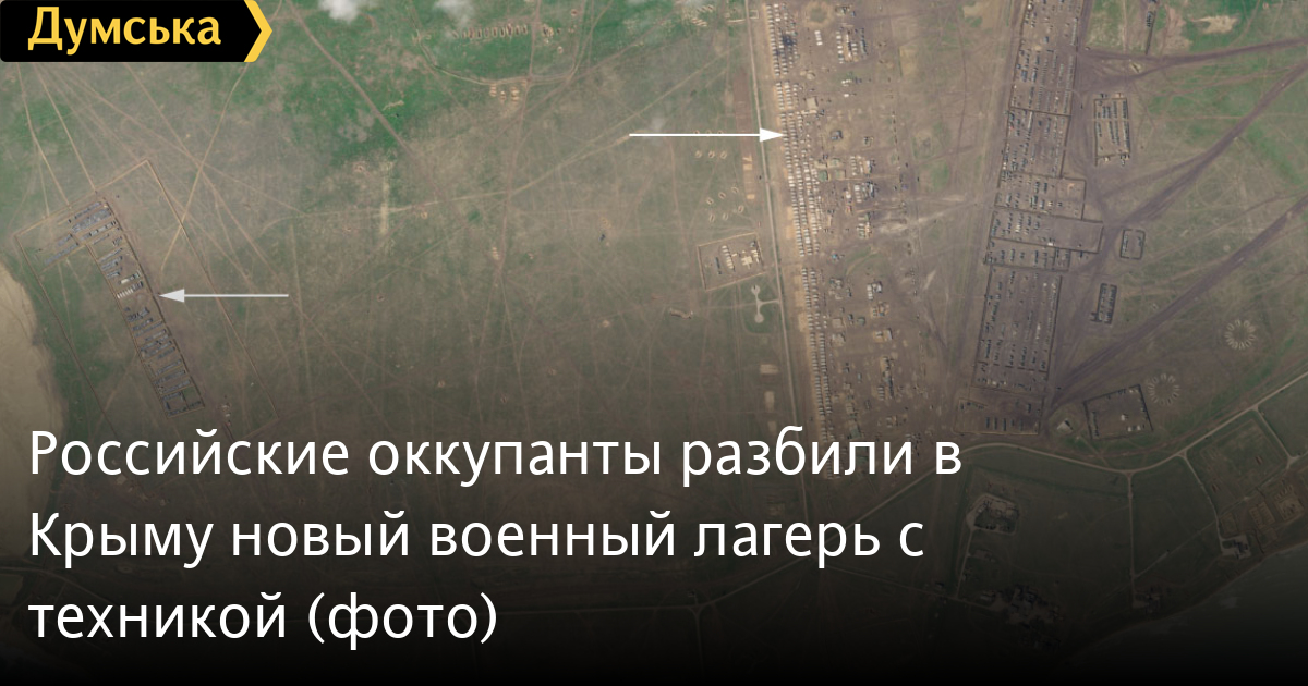 Рядом с этой крупной базой расположена еще одна – поменьше. Второй небольшой военный лагерь разместился чуть восточнее основной локации. Пользователи соцсетей также выкладывают в интернет снимки, где запечатлено, как российскую боевую технику перебрасывают в Крым.