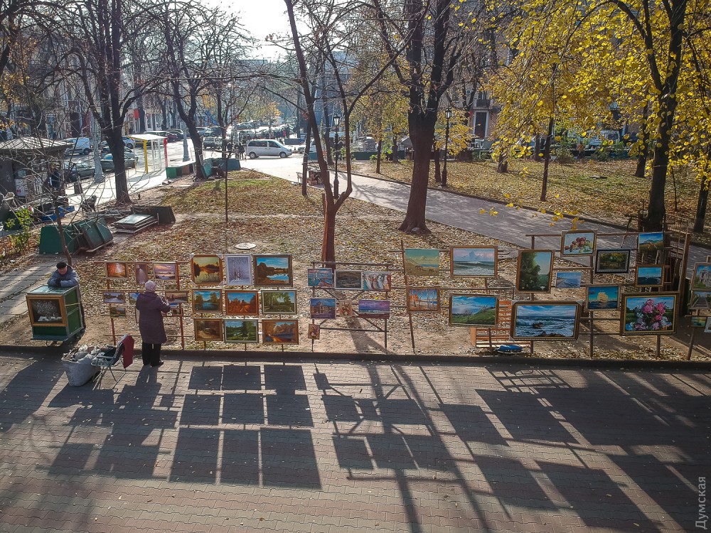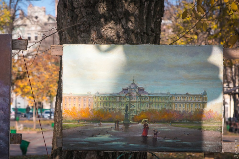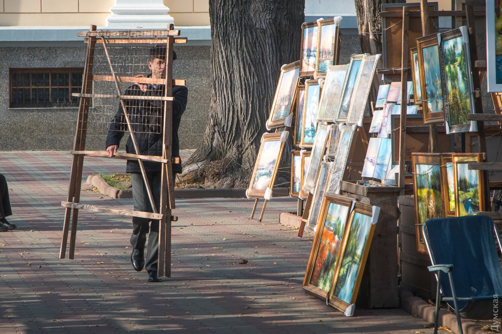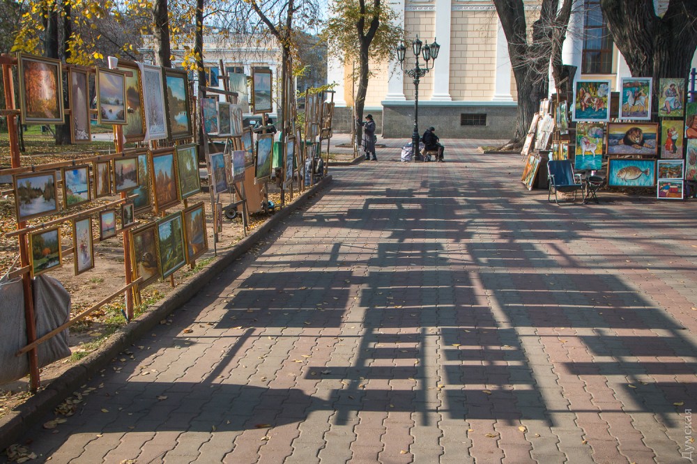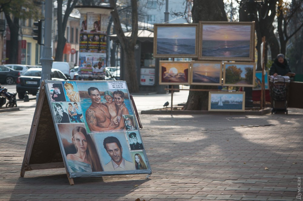 - В Интернете могу продать работу за 100-120 долларов, здесь – за две или две с половиной тысячи гривен, — не скрывает автор. – Все мы платим в наш союз взнос за право стоять здесь, взнос вполне посильный и приемлемый. Публика, увы, обнищала, и лично у меня покупают как раз не иностранцы, а сами одесситы, а они живут небогато.