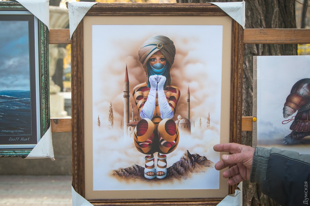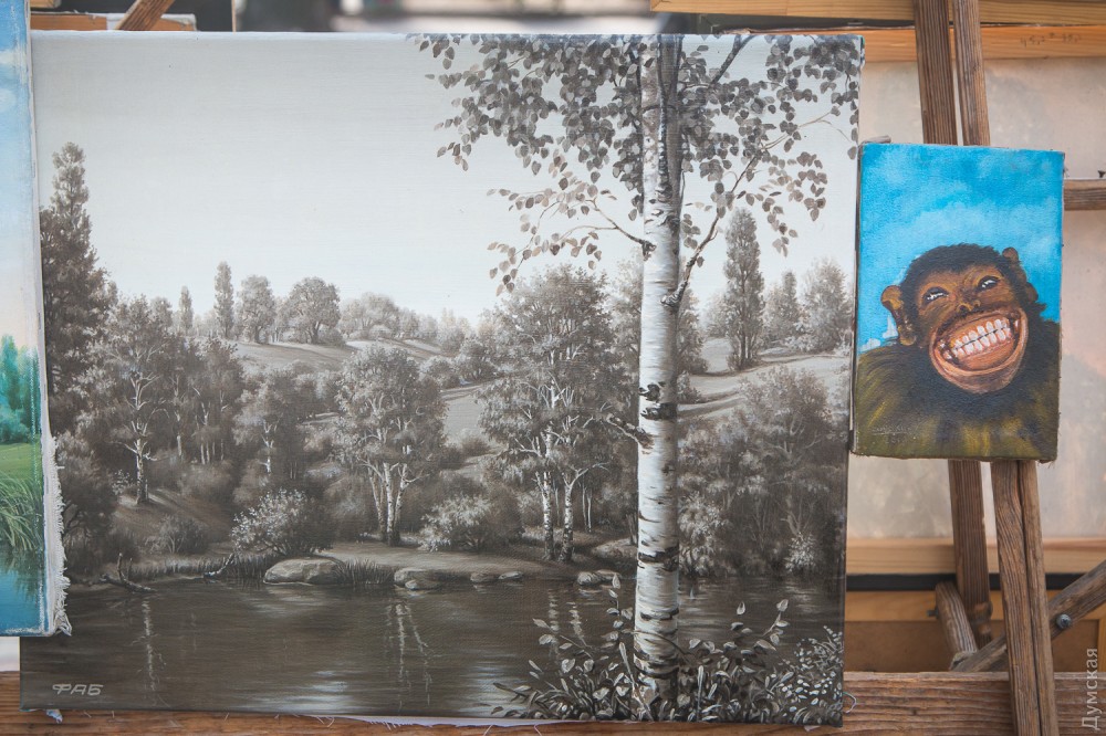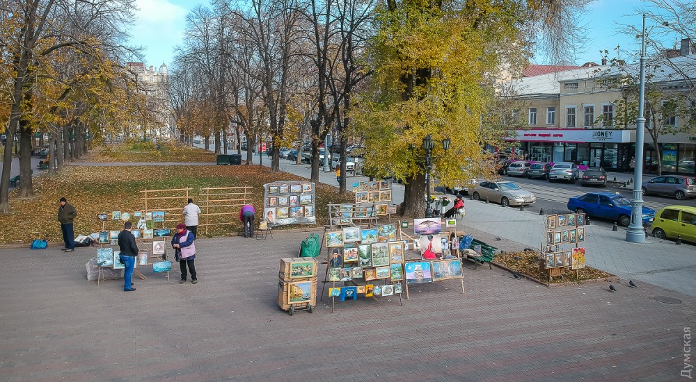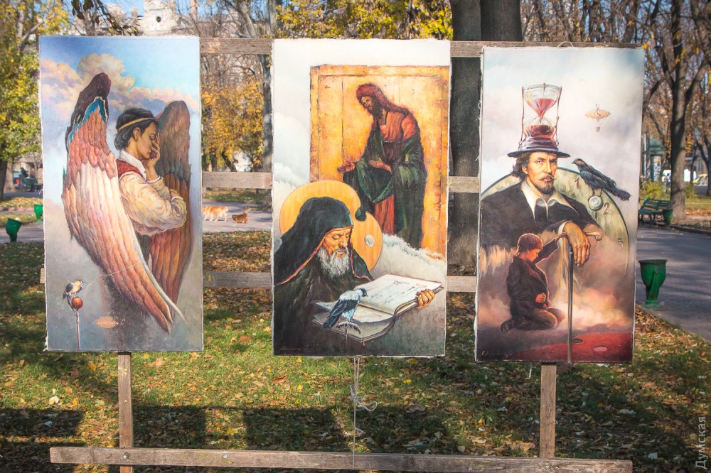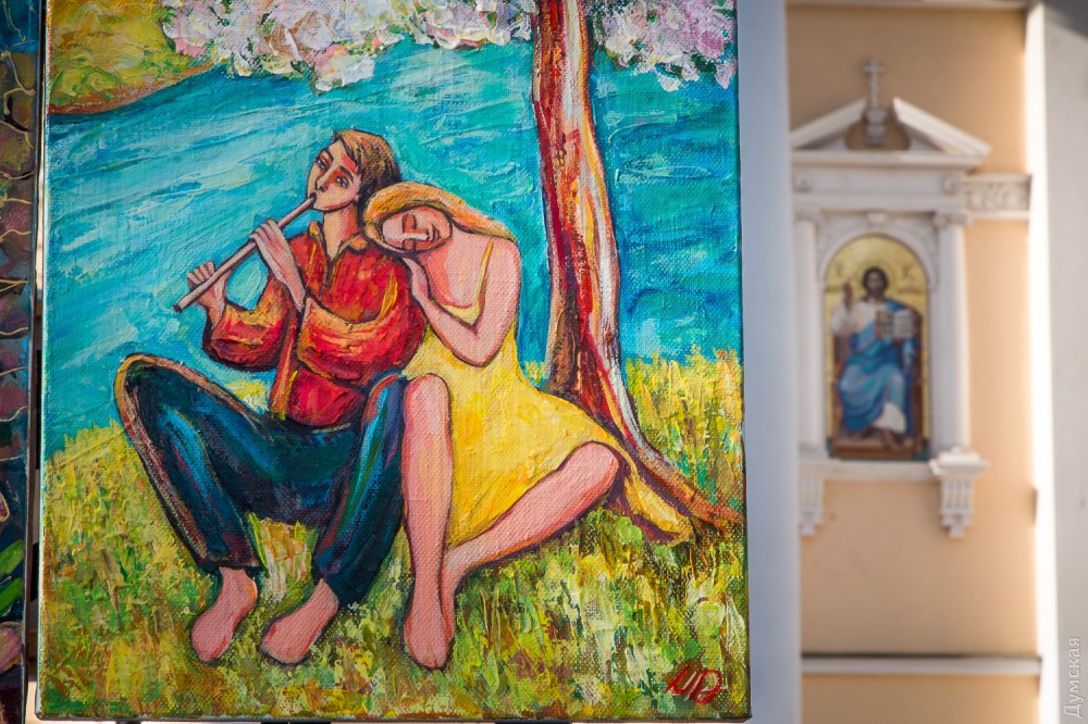 - В Интернете могу продать работу за 100-120 долларов, здесь – за две или две с половиной тысячи гривен, — не скрывает автор. – Все мы платим в наш союз взнос за право стоять здесь, взнос вполне посильный и приемлемый. Публика, увы, обнищала, и лично у меня покупают как раз не иностранцы, а сами одесситы, а они живут небогато.