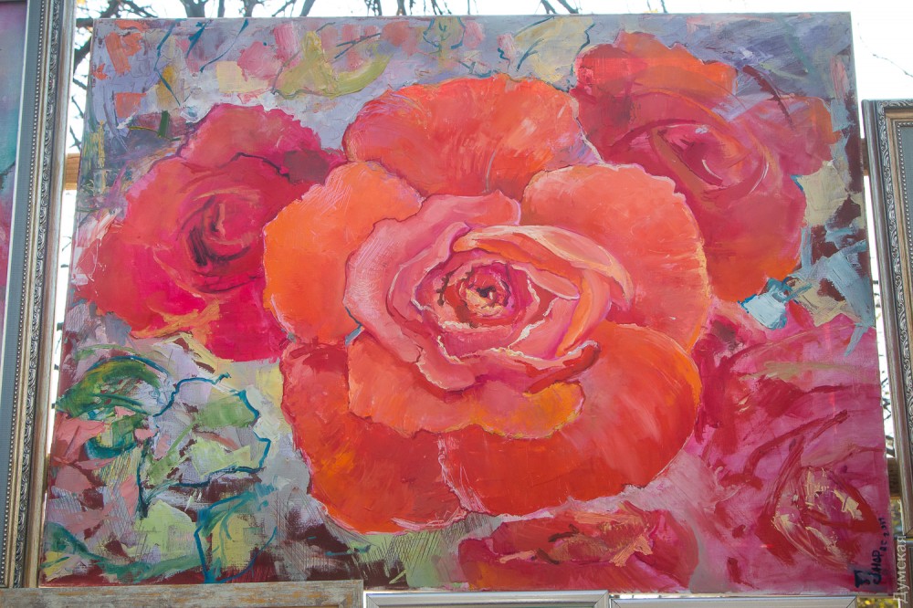 - Похолодало, так что же, будем работать, мы уже привыкли, — улыбается Ольга Валентиновна. – Водкой не греемся, греют чай, кофе и взаимовыручка! Нас часто благодарят родители с детьми за то, что остаемся бесплатным музеем под открытым небом, говорят: «Слава Богу, дышит еще город искусством!». Не каждый сегодня может купить билет в музей, а без денег туда можно зайти только в первый день работы выставки… Мой сын творит дома, а я как настоящая одесская мама пропагандирую его творчество. Он у меня – участник многих выставок и конкурсов, Рита Колобова приглашает его для экспозиций «Времена года» в Воронцовском дворце. Сейчас готовимся к новому международному конкурсу, у сына свой сайт. Слабенько покупают картины, конечно, тяжело стали люди жить…