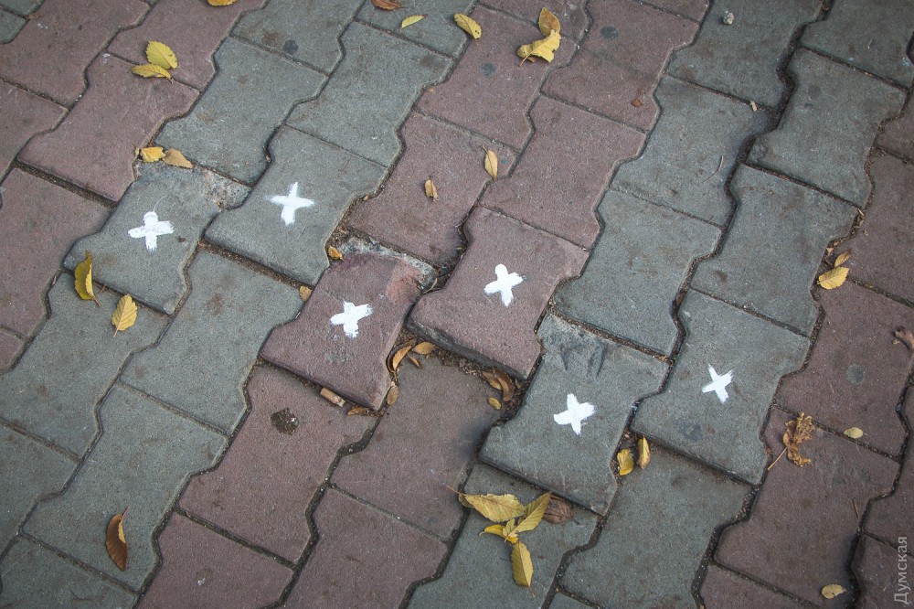 Саму Соборку тоже уже впору ремонтировать: сознательные реализаторы пометили крестиками отставшую плитку, чтобы покупатели не спотыкались.