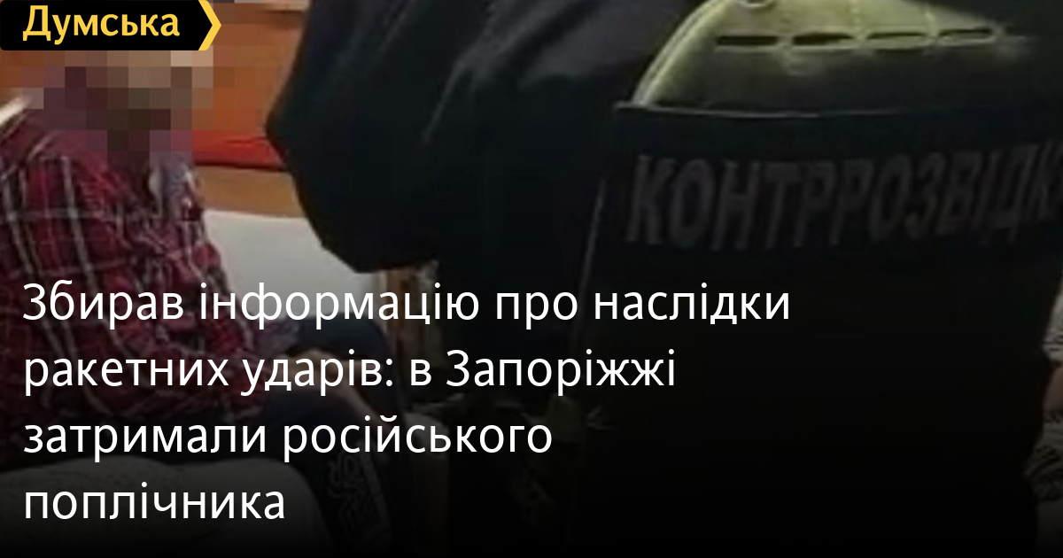 Російського інформатора, який збирав для окупантів інформацію про наслідки ракетних ударів по цивільній інфраструктурі, затримали правоохоронці в Запоріжжі.