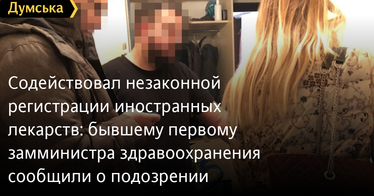 Сприяв незаконній реєстрації іноземних ліків: колишньому першому заступнику міністра охорони здоров`я повідомили про підозруКолишньому першому заступнику міністра охорони здоров’я повідомили про підозру за те, що він сприяв незаконній реєстрації іноземних лікарських засобів недоведеної якості. Як повідомили у пресслужбі СБУ, колишній посадовець, який був звільнений минулого тижня, ухвалив неправомірне рішення щодо державної реєстрації за спрощеною процедурою зарубіжного препарату, який фактично є біологічно активною добавкою і потребує додаткових досліджень. Таким чином цей БАД не міг бути зареєстрований як лікарський засіб, тим більше у прискореному режимі. Вирішується питання щодо обрання міри запобіжного заходу. Триває досудове розслідування для встановлення всіх обставин злочину та кола причетних до нього осіб. Нагадаємо, що минулого тижня Кабмін звільнив за власним бажанням першого заступника міністра охорони здоров'я Олександра Комаріду. Помітили помилку? Виділяйте слова з помилкою та натискайте control-enter |