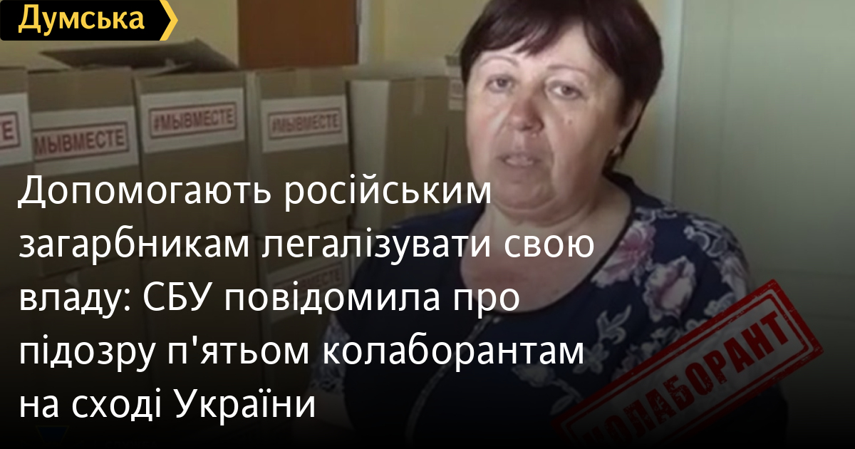 Допомогають російським загарбникам легалізувати свою «владу»: СБУ повідомила про підозру п'ятьом колаборантам на сході УкраїниСлужба безпеки Украъни повідомила про підозру колаборантам, які зараз допомагають рф легалізувати окупацію на сході України. Як повідомляє пресслужба відомства, СБУ задокументувала злочинну діяльність п'ятьох колаборантів, які сприяють російським загарбникам легалізувати свою «владу» на тимчасово окупованих територіях Луганщини та Донеччини. Зрадники імітують «діяльність», беруть участь у пропагандистських заходах і змушують населення підкорюватись «новим порядкам». Зокрема, повідомлено про підозри: - мешканцю Рубіжного, колишньому депутату міськради від «ОПЗЖ», який призначений «заступником голови адміністрації» тимчасово окупованого Сватівського району; - депутатці місцевої ради, яка обійняла посаду «заступниці голови адміністрації Марківського району лнр»; - «начальниці відділу життєзабезпечення с. Веселе Старобільського району»; - мешканцю Донеччини, який очолив «адміністрацію Волноваського району днр»; - так званому голові «Мангушської селищної ради днр». Кожному з цих зрадників повідомлено про підозру. Їм загрожує до десяти років позбавлення волі. СМЕРТЬ РОСІЙСЬКИМ ОКУПАНТАМ! Помітили помилку? Виділяйте слова з помилкою та натискайте control-enter |