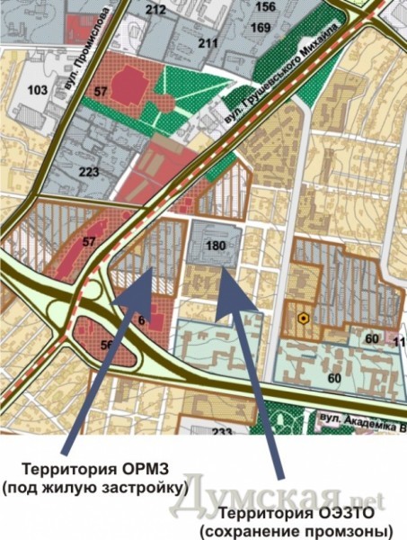 Разработчики проекта Генплана разумно и логично решили, что раз уж так получилось, то соседство жилого района с металообрабатывающим заводом, где трудятся сварщики и шумит технологическое оборудование — это неправильно. И — отвели территорию ОРМЗ под жилую застройку.