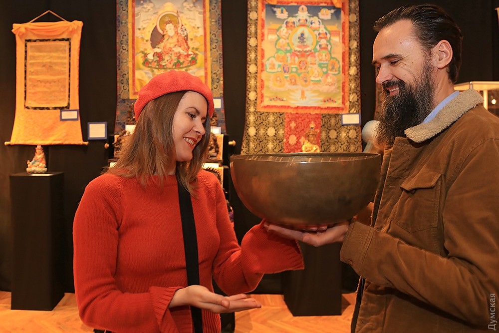 Гималайская весна открылась в Одессе ударом тибетского гонга, гучный бас которого рассыпался непривычными гармониками по залам Музея западного и восточного искусства. Более 350 экспонатов собрали ценители Тибета в стенах одесского музея. Все они являются оригинальными произведениями искусства, созданными в монастырях и мастерских Тибета, Непала, Бутана и других буддийских регионов мира. Среди них - более 200 буддийских статуй, 50 тханок (свитковая живопись), а также маски, храмовые музыкальные инструменты, ритуальные предметы, традиционные одежда и украшения, предметы быта. Заходя в зал, посетитель сразу попадает в атмосферу непривычной нам культуры. Странная музыка, полумрак и необычные фигуры заставляют посмотреть на мир с другой стороны. Звуки гонга почти вводят в транс, а звуковые вибрации пробегают по телу невидимой волной. Выставка продлится по 10 мая. Автор — Сергей Смоленцев СМЕРТЬ РОСІЙСЬКИМ ОКУПАНТАМ! Помітили помилку? Виділяйте слова з помилкою та натискайте control-enter |