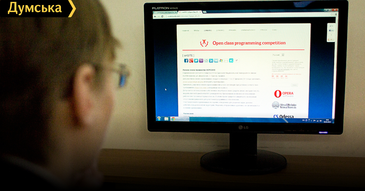 Сегодня в стенах старейшего вуза Одессы – университета имени Мечникова — выясняют отношения программисты. В ОНУ проходит в международный турнир Open Class programming competition-2013. Как рассказал «Думской» главный судья соревнований, доцент ОНУ Игорь Мазурок, в соревнованиях участвуют и студенты и преподаватели. Последний раз нечто подобное здесь происходило в далеком 1988-м. Правда, тогда боролись за титул самых веселых и находчивых. «Мы решили провести соревнования, в которых студенты и преподаватели соревнуются на равных в своей профессиональной области – составлении алгоритмов и их кодировании. На данный момент это самый популярный вид деятельности который приносит довольно высокие доходы. Возрастной ценз ограничен разве что возрастом вселенной. У нас очень много участников в онлайн-туре, около 40 команд из Харькова, Днепропетровска, Донецка, Киева и даже Стаханова. При этом, в первую очередь, мы старались сделать этот конкурс для одесситов. Из одесских вузов представлены преимущественно ОНУ, ОНПУ (Политех) и Академия холода», — рассказал Игорь Мазурок. Примечательно, что вместе с людьми в конкурсе участвуют и системы искусственного интеллекта. «Это специализированные системы, не разработанные для общения. Т.е., общаться с ними можно, но на уровне интегралов, и не каждый журналист к этому общению морально готов», — говорит судья конкурсов. Соревнования проходят в двух режимах: личное первенство с персональным присутствием в аудитории и командное онлайн-соревнование. «Благодаря этому конкурсу мы смотрим на силы новых программистов. Мы хотим, чтобы в нашем городе становилось все больше специалистов по программированию. Сертификат участника и тем более победителя данных соревнований будет хорошим подспорьем в будущем трудоустройстве», — уверен генеральный директор компании-соорганизатора турнира Opera Software Ukraine Александр Решетько. СМЕРТЬ РОСІЙСЬКИМ ОКУПАНТАМ! Помітили помилку? Виділяйте слова з помилкою та натискайте control-enter |
