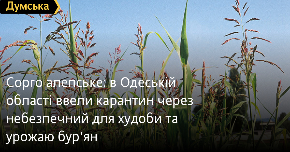 На території Одеської області запроваджено карантинний режим через небезпечний багаторічний бур'ян, який має назву сорго алепське.
