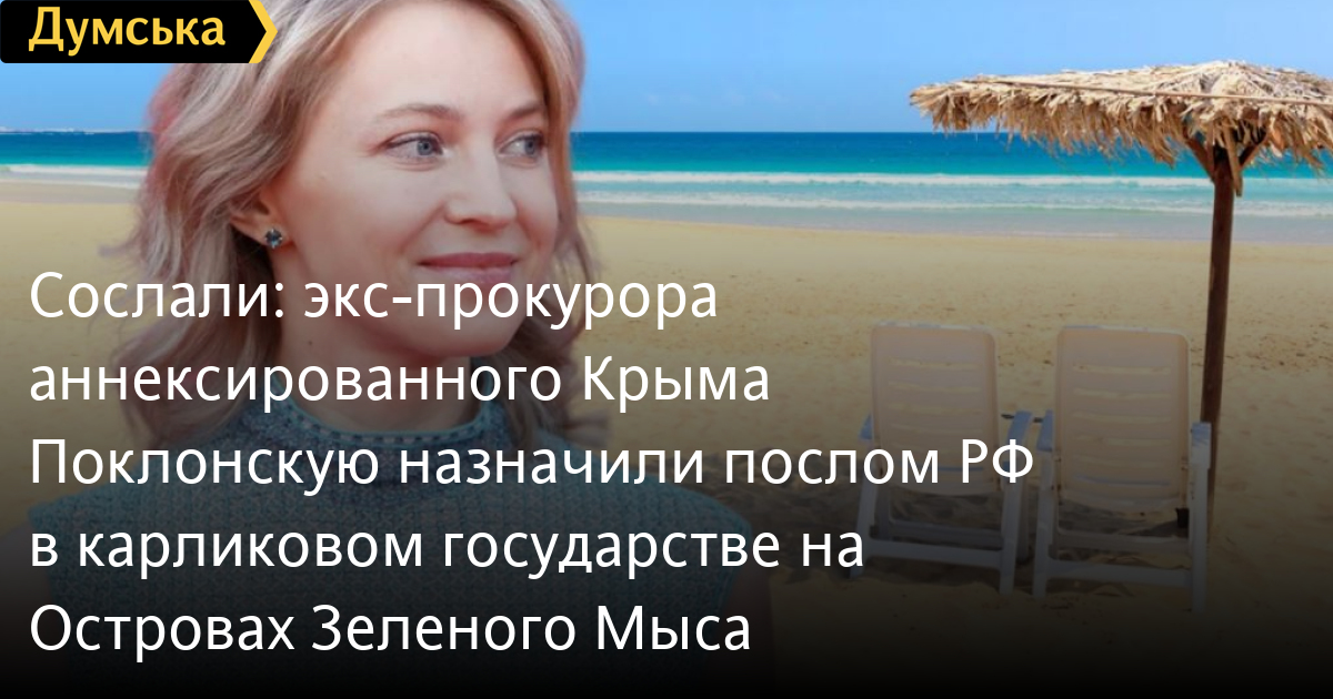 Бывший прокурор аннексированного Крыма Наталья Поклонская официально стала послом России в Республике Кабо-Верде, расположенной на Островах Зеленого Мыса.