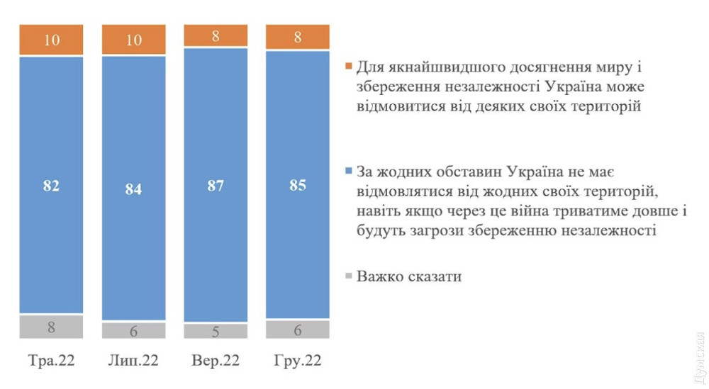 Станом на кінець грудня 85% українців виступали проти будь-яких територіальних компромісів із російськими агресорами.