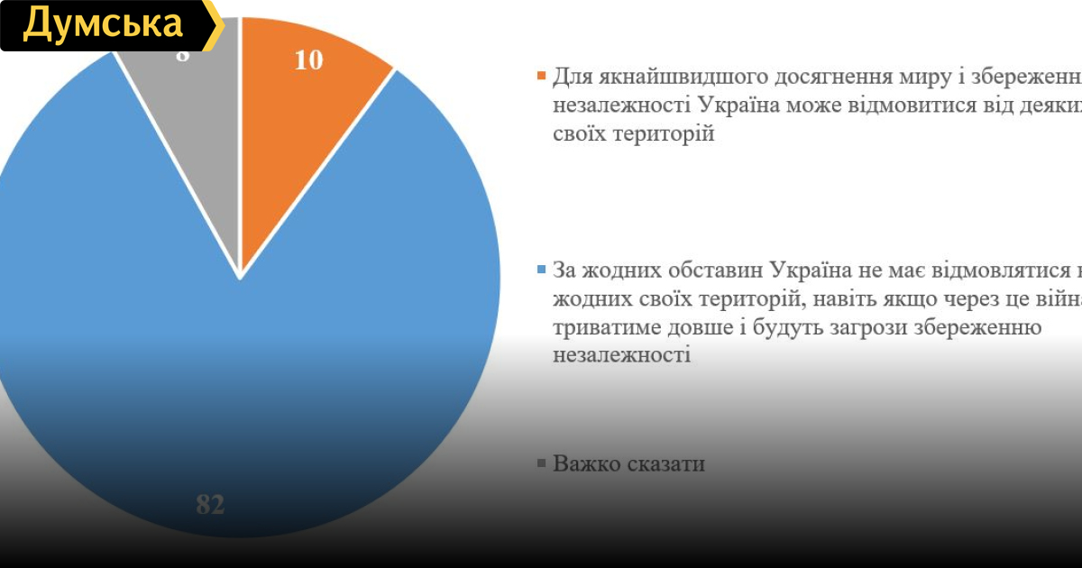Соцопрос: 82% украинцев выступают за продолжение войны до возврата всех территорий82% украинцев считают необходимым вернуть все временно оккупированные территории, вместе с так называемыми «особыми районами» Луганской и Донецкой областей и Крымским полуостровом. Ради этого украинцы согласны на продолжение войны до победного конца, даже с учетом риска потерять государственность. Такие результаты соцопроса опубликовал Киевский международный институт социологии. По мнению подавляющего большинства опрошенных респондентов, Украина «ни при каких условиях не должна отказываться от каких-либо своих территорий». 10% респондентов готовы на территориальные компромиссы ради скорейшего достижения мира, еще 8% затруднились ответить на этот вопрос. Отметим, мнение жителей запада, центра и юга страны практически идентично. На западе Украины готовы продолжать войну до победы 84% опрошенных, в центральных регионах – 85%, на юге – 83%. На востоке за возвращение всех земель выступает 68% респондентов, на компромисс готовы 19%. СМЕРТЬ РОСІЙСЬКИМ ОКУПАНТАМ! Помітили помилку? Виділяйте слова з помилкою та натискайте control-enter |