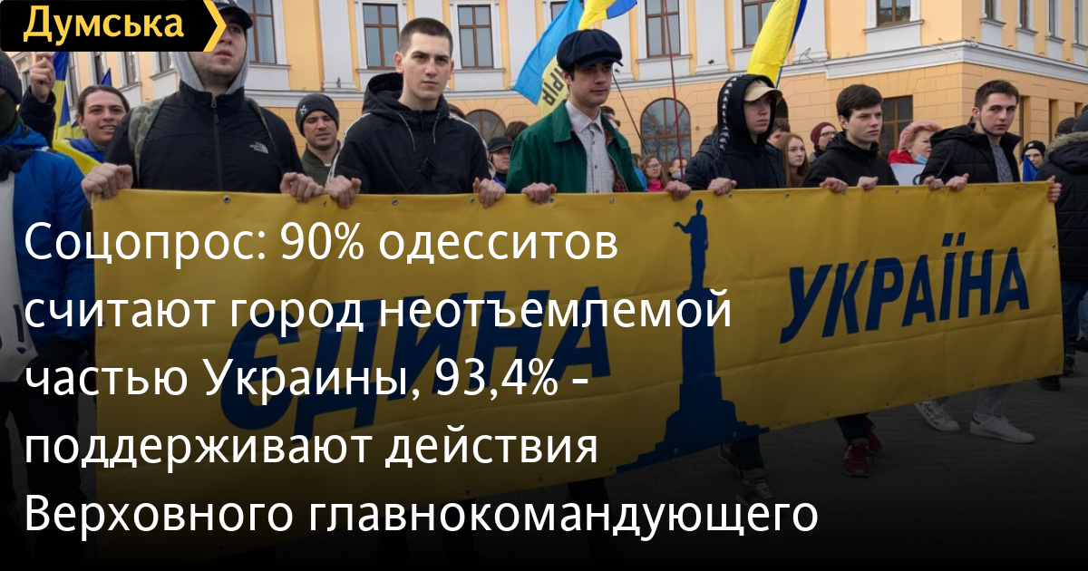 90% жителей города считает, что Одесса — неотъемлемая часть Украины. Не согласны с этим 3,4%.