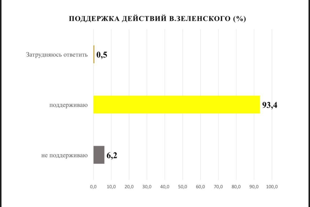 Действия Президента Украины, Верховного главнокомандующего Вооруженными силами Украины Владимира Зеленского поддерживают 93,4% одесситов. Не поддерживают лишь 6,2%.