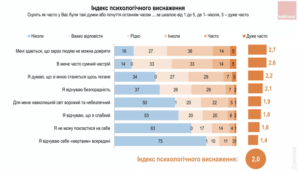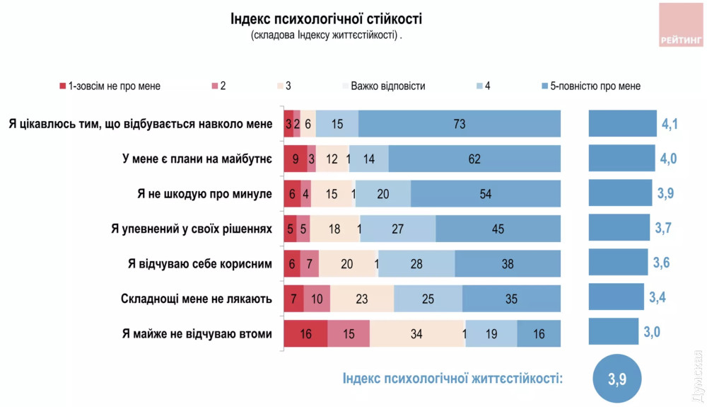 Такі результати дослідження психологічних маркерів населення опублікувала соціологічна група «Рейтинг».