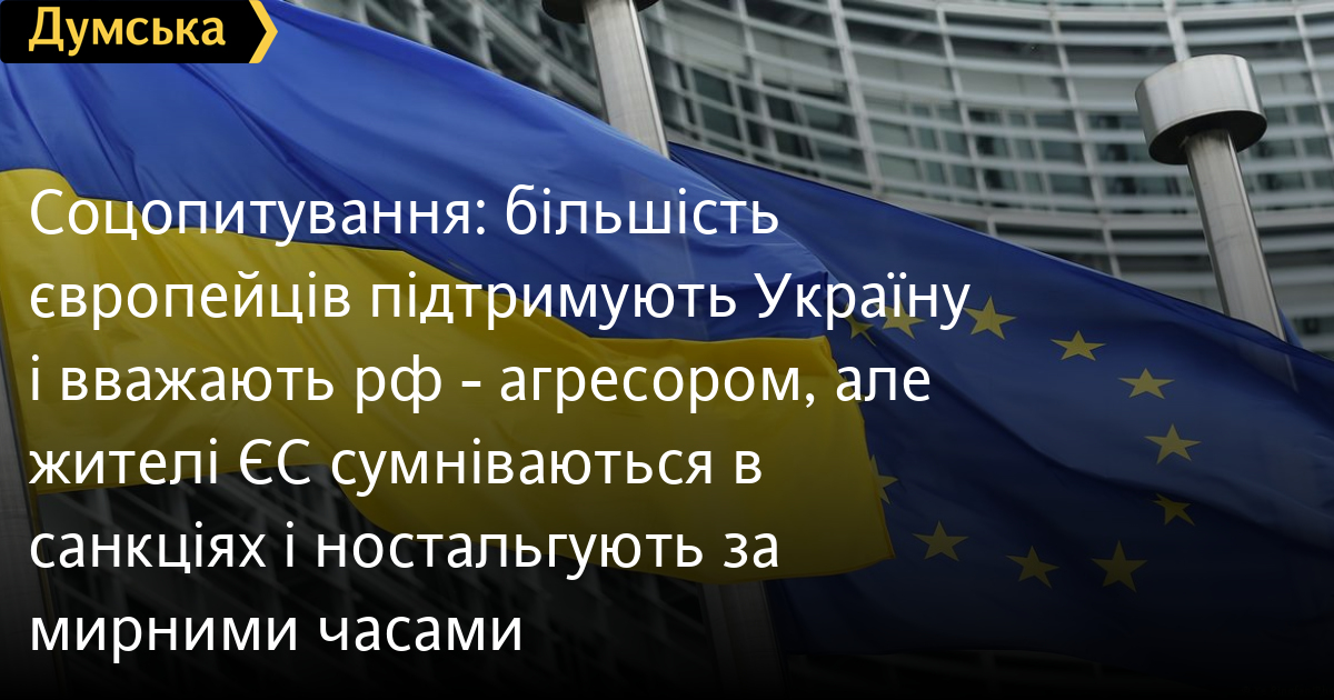 Майже через рік після початку повномасштабної війни більшість громадян Європейського Союзу зберігають підтримку України і вірять у перемогу нашої країни, крім того, вони вірять у те, що українці борються не тільки за свою незалежність, а й за всю Європу.