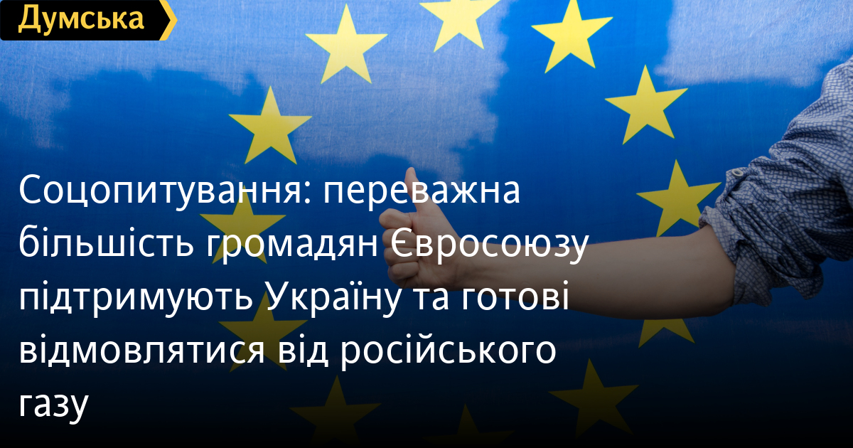 Абсолютна більшість громадян країн-членів Європейського Союзу виступає на підтримку України у зв'язку з російською агресією.