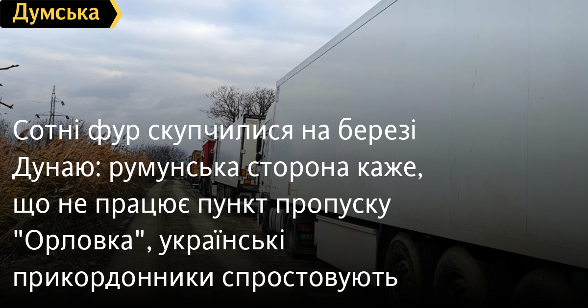 Кілька сотень фур із товаром для українських споживачів скупчилося на румунському березі Дунаю в районі пропускного пункту «Ісакча». Далекобійники скаржаться, що вже семеро діб стоять у черзі. Румунські поліцейські кажуть, що нічого не можуть вдіяти: мовляв, винна українська влада, а пункт пропуску «Орловка» не працює.