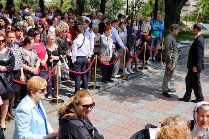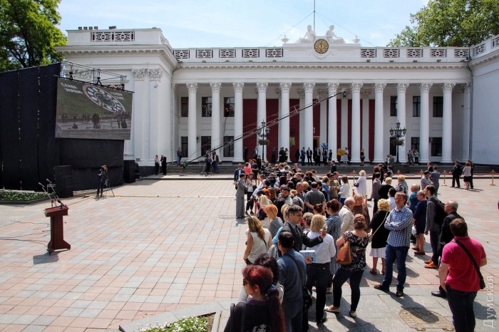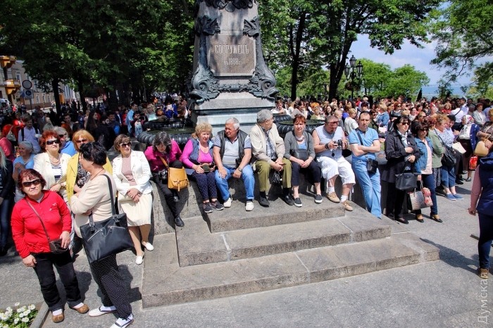 Около 500 одесситов ожидают начало торжественной церемонии открытия Стамбульского парка на Думской площади.