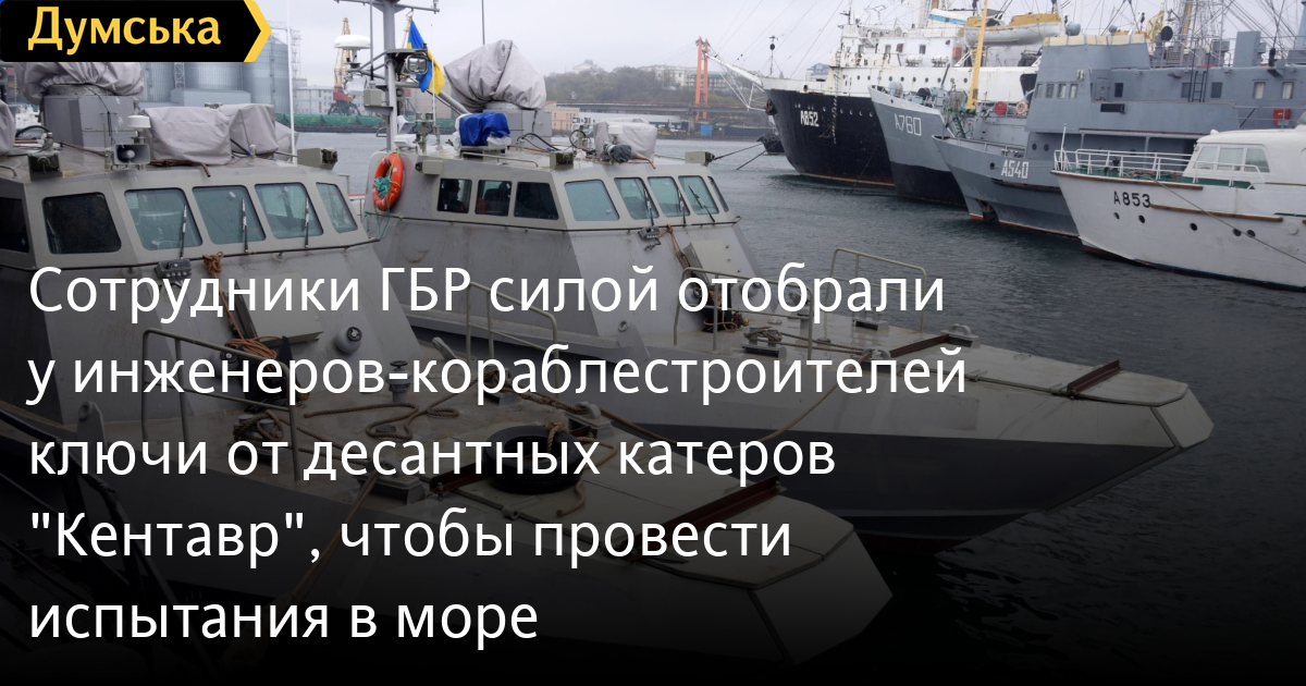 Инженеры киевского судостроительного предприятия «Кузница на Рыбальском» заявляют о противоправных действиях сотрудников Государственного бюро расследований, силой отобравших у них ключи от десантно-штурмовых катеров типа «Кентавр», которые проходят сейчас испытания в Одессе.