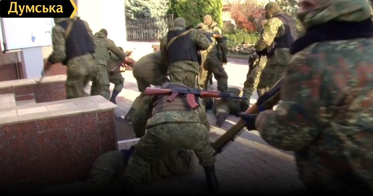 //перекрыть дорогу в районе Шкодовой горы// Даже не представляю себе, какую именно надо перекрыть, чтоб это заметил хоть кто-то, кроме жителей местного частного сектора. А если перекроют какую-то важную магистраль — те же боевики их и разгонят. Интересно, кто эти спотыкающиеся клоуны в зелёной форме.