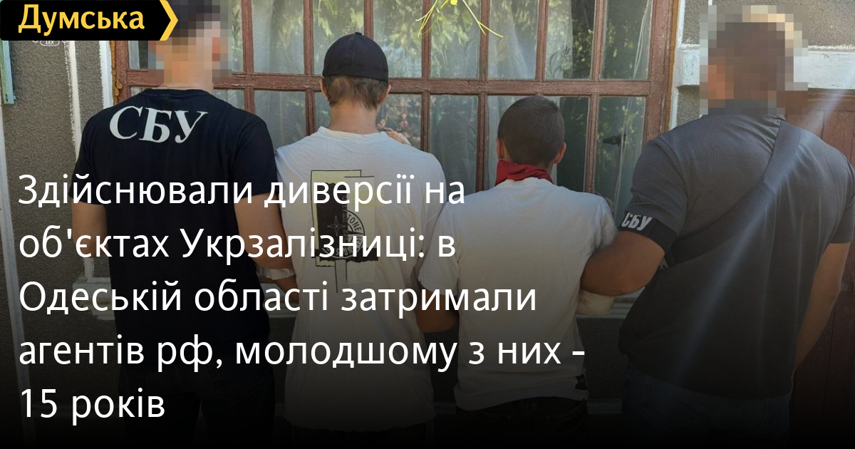 Здійснювали диверсії на об'єктах «Укрзалізниці»: в Одеській області затримали агентів рф, молодшому з них - 15 роківВісьмох жителів Одеської області, які на замовлення ворога виводили з ладу обладнання «Укрзалізниці», викрили правоохоронці. Як повідомили в пресслужбах прокуратури та СБУ регіону, безробітний житель Одеси збирався підірвати залізничну лінію під час руху поїзда. Правоохоронці затримали його саме в той момент, коли він намагався закласти саморобний вибуховий пристрій під рейки. Ще семеро осіб затримано в області. Вони підпалювали релейні шафи на залізниці, щоб ускладнити транспортну логістику Збройних сил України. Вони використовували легкозаймисті суміші, а після підпалу знімали все на камеру для звіту перед кураторами з рф. Серед затриманих – брати з Білгород-Дністровського району, двоє молодих людей з Подольська, пенсіонер з Ізмаїла, мешканці Березовського та Одеського районів. Наймолодшому – всього 15 років. Кожен з фігурантів отримував завдання через Telegram. З липня по вересень цього року диверсанти пошкодили релейні шафи біля станцій Ксенієво, біля с. Бритівка, а також на перегонах Раухівка-Сербка і Подольськ – Чубовка. Залежно від скоєних злочинів підозрюваним інкримінують диверсію і закінчений замах на диверсію. Всі затримані перебувають під вартою. СМЕРТЬ РОСІЙСЬКИМ ОКУПАНТАМ! Помітили помилку? Виділяйте слова з помилкою та натискайте control-enter Новини по цій темі: 16 жовтня 2024: Ні відліку від москви! В Одесі деколонізують залізничну станцію 24 вересня 2024: Утьосов проти Монатіка: зустрічати поїзди в Одесі буде все ж таки пісня «У Чорного моря» 9 червня 2024: Перебої з енергопостачанням змусили змінити графіки руху електропоїздів по всій Україні 24 листопада 2023: У 2024 році "Укрзалізниця" запустить 14 нових маршрутів |