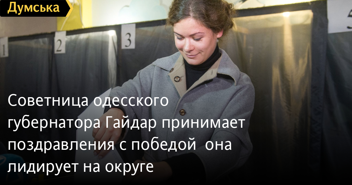 «Данные с 19-ти участков из 22-х: у меня 42%, у двух основных конкурентов по 25», — сообщила Гайдар на своей странице в Фейсбуке, получив в ответ десятки сообщений с поздравлениями.