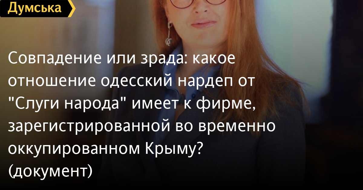 Какое отношение к фирме, зарегистрированной во временно оккупированном Крыму, в том числе российскими властями, имеет народный депутат от партии «Слуга народа» и жена председателя Одесского облсовета, руководителя региональной ячейки той же политсилы Диденко Юлия Александровна?