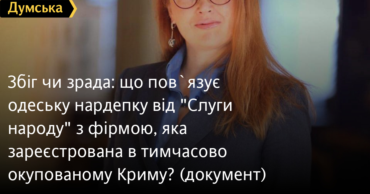 Фірма, зареєстрована в тимчасово окупованому Криму, зокрема російською владою, може бути пов'язана з народним депутатом від партії «Слуга народу» і дружиною голови Одеської облради, керівника регіонального осередку тієї самої політсили Діденко Юлією Олександрівною.